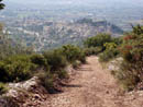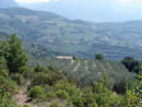 Le chemin passe par des vignes, et des oliviers. Le terrain est vallonné ; des montées et descentes, juste ce qu'il faut pour éviter la monotonie d'une piste trop plate! Ca me plaît beaucoup, moi qui suis habitué à randonner en montagne!