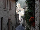 Après la messe, et le tampon sur ma crédentiale, je pars avec Maria que je connais à peine... Il est plus de 19 heures! Elle a son panier à la main, moi mon bâton de pèlerin et mon sac sur le dos. Nous passons par des rues, enfin plutôt des via, viale, vicolo, piazza, en faisant des arrêts chez le boucher, le boulanger, le marchand de légumes : on croirait qu'elle fait son marché pour la semaine. J'ai l'impression qu'elle habite à des kilomètres, et je ne voyais pas Montelibretti aussi grand! Ce qui m'inquiète c'est : comment retrouver mon chemin dans toutes ces rues demain matin? Maria imperturbable me dit : ne t'inquiètes pas, la Via di San Francesco passe devant chez moi.