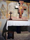 Je me documente : j'apprends que François Bernadone est un jeune homme riche, voyageant dans le monde, festoyant avec ses amis, menant une vie sans soucis, participant même à une guerre où il est fait prisonnier, et où il tombe gravement malade. Quelques temps plus tard, Dieu lui apparaît en songe, et lui demande de laisser les armes, pour le servir. Il abandonne ses biens ; son père le déshérite. Il rencontre des lépreux, les exclus. Sa conversion commence à ce moment là. Il se fait pauvre parmi les pauvres : solidaire avec les démunis, les marginaux. Il se retire souvent pour prier dans une chapelle près d'Assise (San Damiano) ; un jour, le crucifix peint sur du bois lui parle :
