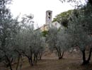 Le temps est gris, maussade, et le plafond de nuages bas masque une partie de la montagne... On peut être étonné de ce mot "montagne" ici en Toscane, province que l'on imagine à peine vallonnée, couverte d'oliviers et de vignes ; et pourtant je vais devoir grimper plus de 1000 mètres sur une étape d'environ 16 km. Comme je le ferai tous les matins, j'offre cette journée de marche en prière à Dieu pour la Paix, et je demande à Saint François de montrer le chemin, la voie, sa voie...