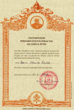 Ma grande joie est de rencontrer, comme en 2006, Monseigneur Vercesi au Vatican. Les pèlerins venant à pied jusqu'à Rome, se doivent de venir le voir. Il est d'une grande gentillesse, et prend le temps qu'il faut pour s'entretenir avec nous. Il me montre le livre d'or sur lequel j'avais signé en 2006... Nous descendons ensemble aux tombeaux des Papes, et nous inclinons et prions où repose Jean-Paul II. Ensuite passage par la chapelle juste derrière le tombeau de Saint Pierre, à l'aplomb du Maître Autel de la Basilique sous la Coupole. Monseigneur Vercesi me lit une lettre de Saint Pierre, et nous disons le Notre Père.