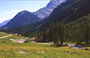 Ce chemin jusqu’au col du Bonhomme n’a plus de secret pour moi. A Notre Dame de la Gorge, dont c’est la fête aujourd’hui, on prépare la messe en plein air. Il faut croire que le petit déjeuner m’a apporté les éléments essentiels à une dépense d’énergie, car je grimpe jusqu'à la Balme sans problème, mais après, les sucres ayant été éliminés aussi vite que je suis monté, je ressens un coup de pompe juste avant le col. |