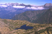 J’adore ce passage : la montée assez raide exposée au levant, au milieu des blocs. Attention il n'y a plus de torrents, ni sources dès les premiers éboulis franchis, mais cette vue superbe, arrivé à la fenêtre… La descente chaotique n’en finie plus, sur l’autre versant. C’est la difficulté de ce Tour qui perdrait de son intérêt si on évitait ce passage : mais pourquoi l’éviter? Le sentier par Bovine est plus long et plus fastidieux, mais plus praticable par mauvais temps.