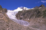Le glacier de Pré de Bar et sa langue terminale toujours aussi imposante, chute du Mont Dolent, point de rencontre frontalier entre la France, l’Italie et la Suisse. La descente sur l’autre versant du col est longue. Je passe au hameau de Ferret, puis à La Fouly. Il n’y a plus personne sur ce sentier forestier. Praz de Fort, Issert, ces villages suisses sont tranquilles.