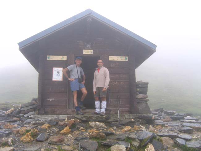 Quelques minutes à l'abri au col du Bonhomme.