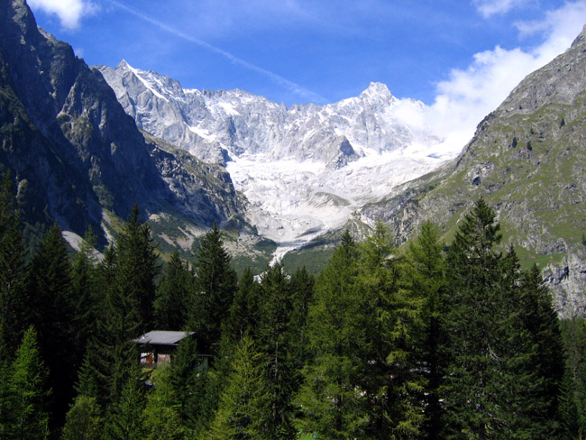 Le glacier de l'A Neuve et le Tour Noir, vus de La Fouly.