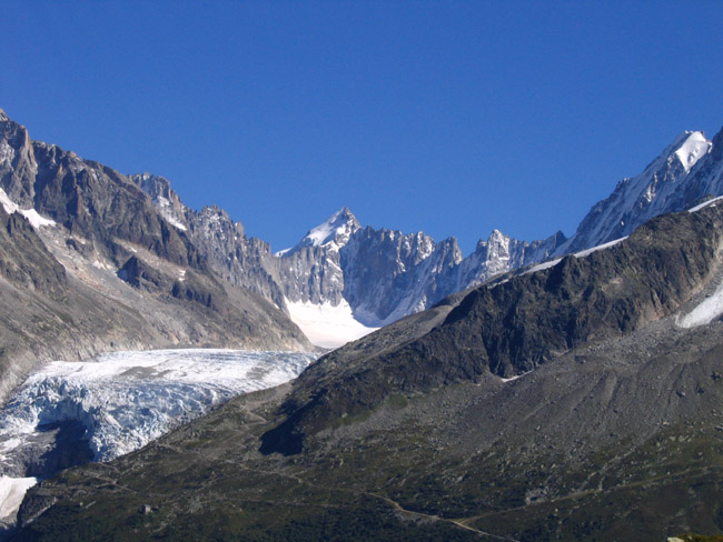 Vue sur le glacier d'Argentière et le Mont Dolent, dans la montée vers les Aiguilles Rouges.
