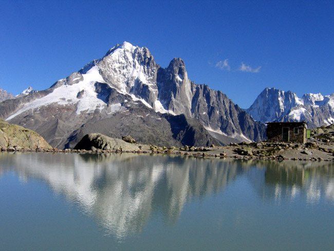 Le Lac Blanc, l'Aiguille Verte, le Dru, les Grandes Jorasses.