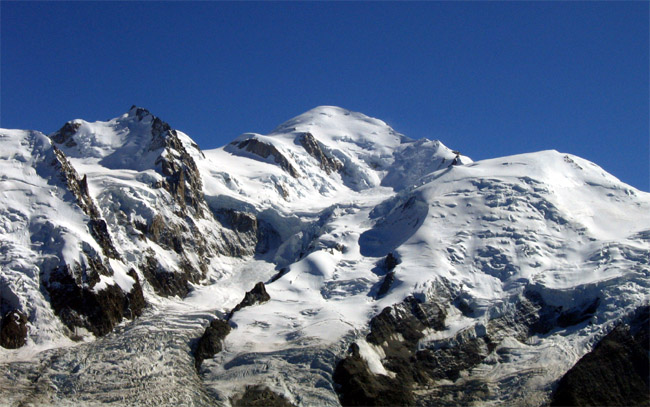 entouré du Mont Maudit, l'arête des Bosses, et le Dôme du Goûter.