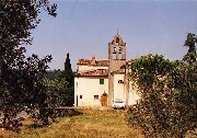 Un peu plus loin, je sors de la forêt, et au bout d'un grand pré, le petit village de Selvole apparaît. De l'autre côté un sentier très mal indiqué, et envahi par les ronces, descend vers une route qu'il faut traverser pour continuer en face. Un large chemin passe devant l'Abbaye San Donato in Perano. De part et d'autre, les collines sont couvertes d'oliviers, de chênes verts et de vignes.