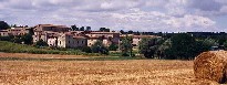 "Pour éviter de me faire encore avoir," avec une carte trop approximative, et aucune indication sur le terrain, je préfère suivre la route ; la circulation est peu intense. Il faut contourner par le nord une partie des collines métallifères, et redescendre de l'autre côté. Je devais normalement traverser ces collines par les chemins! Cette route passe dans la plaine agricole qui communique avec le Val d'Elsa, et la station thermale de Volterra. A un carrefour je prends la direction à gauche, et par des vallons où la culture prospère, on passe près du village de Mensano, et direction sud la route peu fréquentée et boisée me conduit à Radicondoli. C'est un village agréable, aux ruelles caractéristiques, et quelques édifices de la Renaissance ; bâti aussi sur un coteau, de part et d'autre la vue s'étend sur les cultures céréalières, et les collines métallifères. Il y a un agritourisme (hébergement chez l'habitant à la ferme) au milieu d'abricotiers, et un hôtel dans le village.