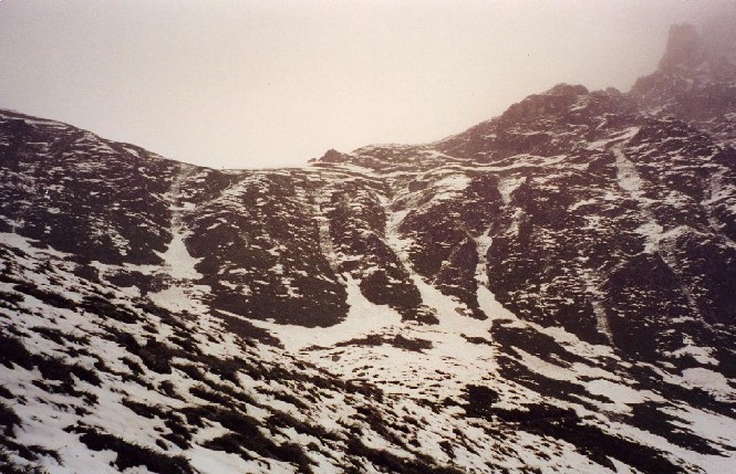 Les traces sont inexistantes, le brouillard et les nuages bouchent complètement le paysage ; j’ai même du mal à me repérer.