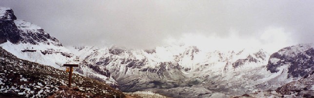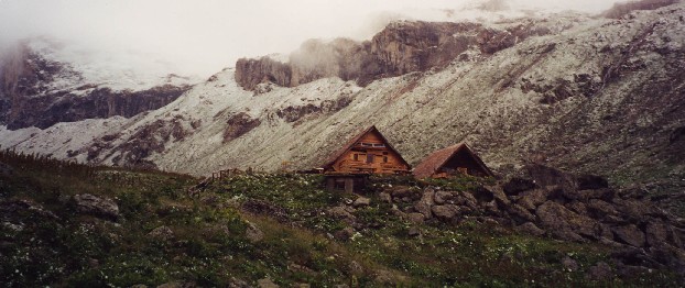 Personne n’est surpris de constater que les tables dehors sont recouvertes d’un demi centimètre de glace ; bien qu’étant seulement à 2100 mètres d’altitude, le thermomètre indique - 5° à 7 heures.