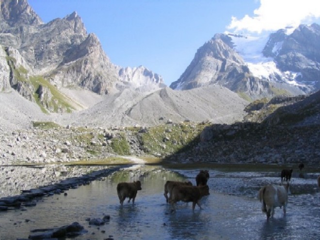 Le lac des vaches, la moraine glacière, et la Grande Casse