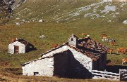 Le sentier suit le pâturage à moutons, et remonte au col du Tambour ; dernière vue sur le refuge de La Valette, et à gauche le roc du Tambour.