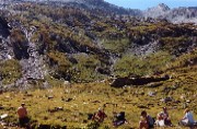 Nous choisissons un endroit à peu près plat dans l'herbe au bord d'un torrent, pour faire la traditionnelle pause casse croûte : saucisson, jambon, fromage, et une bouteille de Bourgogne rouge qui sort du sac de Catherine. Le petit café, pour les uns, le thé pour les autres, grâce à la prévoyance de Gilles et Pierrick qui ont apporté chacun leur petit réchaud. |