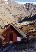Il y a une douche dans une cabine à coté du refuge. Elle est bienvenue, mais hélas je ne sais par quel hasard, mon jeton n'a pas voulu me donner de l'eau chaude! Je suis le seul à prendre une douche froide à 2500 mètres, et à 7 heures du soir. L'eau est même bouillante, paraît il, pour mes co-équipiers (ières)… |