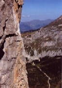 Dans un étroit passage avec à notre gauche la paroi verticale du Grand Marchet, la pente raide conduit, à l'aide de plusieurs mains courantes, dans le cirque de l'Arcelin. Nous sommes redescendus à 1900 mètres ; le sentier longe la moraine glacière recouverte de rhododendrons, d'aulnes, et d'herbes… |