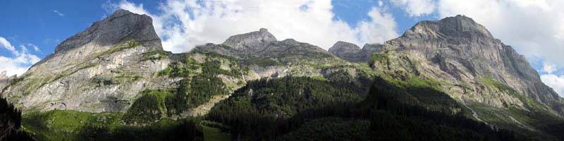 Un panoramique : le Grand Marchet, le Petit Marchet, et le Roc de La Valette, surplombant Pralognan la Vanoise.