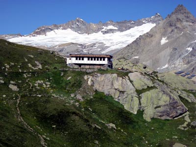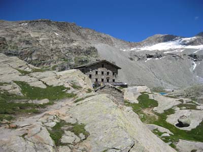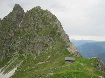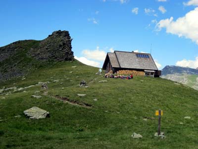 Le refuge du Grand Bec à 2403m est situé dans un creux herbeux au pied de la pointe de la Vuzelle. J'y arrive à 13h30.