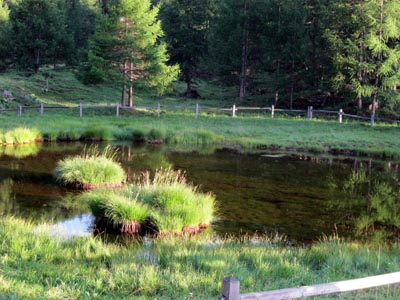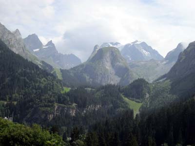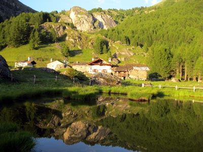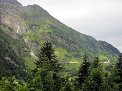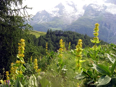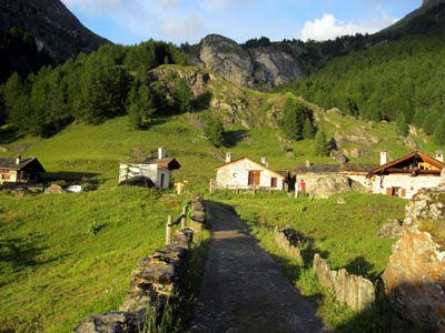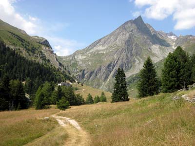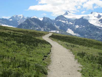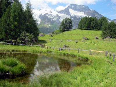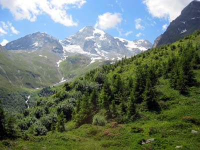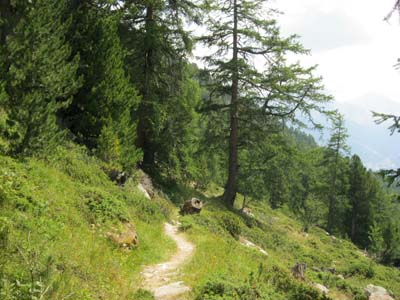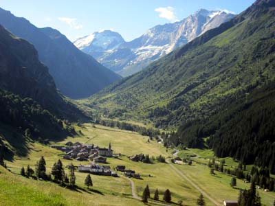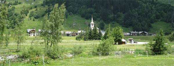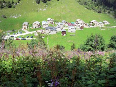 Un large chemin le long de la moraine conduit aux hameau des Fontanettes, et en poursuivant la descente j'arrive à Pralognan 1410m, à 15h30.
