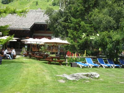 Une bonne heure pour redescendre, et de retour au refuge en fin d'après midi ; le hameau s'est vidé de ses touristes. Quatre randonneuses sont arrivées, et c'est tout! Il y a la douche chaude au refuge, mais sans lumière... Il faut donc laisser la porte de la cabine ouverte pour y voir un peu clair! Les toilettes sont à l'extérieur : la cuvette des WC accessible en montant deux marches, comme pour monter s'asseoir sur un trône... Dîner quelconque : les crozets sont trop cuits et secs! C'est pourtant ici que je paie le plus cher! 45€ la demi pension....