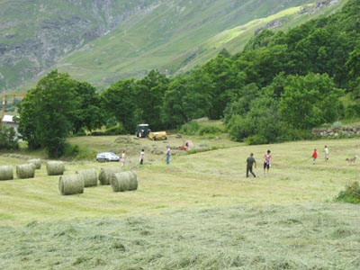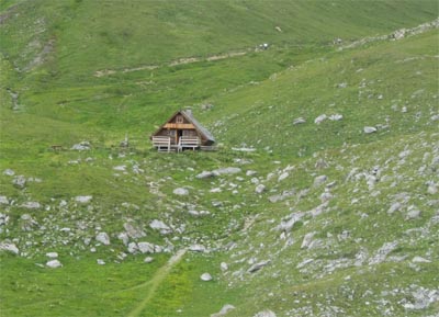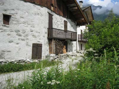 Dans l'après midi je vais me promener au hameau de Friburge par le "sentier de découverte"... Sitôt revenu, le refuge a retrouvé son image de "refuge". Les touristes sont partis. Je suis même seul randonneur ce soir! A ma plus grande satisfaction, je peux choisir mon box, mon lit, et m'étaler une nouvelle fois! Le patron quant à lui, n'a pas l'air heureux... Il préfèrerait avoir cinquante randonneurs ici, plutôt qu'un seul! La saison tarde à arriver, et le mauvais temps n'arrange rien ; surtout que dans la soirée une forte pluie se met à tomber et les nuages bas envahissent vite toute la vallée!