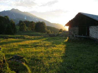 Le Monal est un lieu paradisiaque le soir quand on se retrouve entre randonneurs ; on est les seuls habitants du hameau... Le coucher de soleil est magnifique, et donne une couleur particulière à la prairie, aux fleurs, et aux sapins!