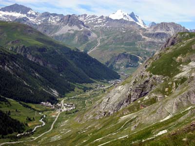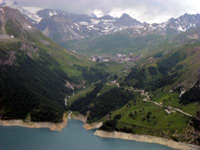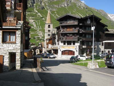 A midi et demie je repars, cette fois en direction du Pont St Charles comme hier. Ensuite la route pour le Fornet, et j'arrive à Val d'Isère à 14 heures. C'est la grisaille, il pleut et ne fait pas chaud! Il n'y a pas grand monde : certains peuvent s'en réjouir, mais pas les commerçants...
