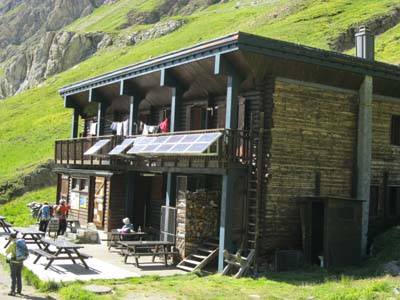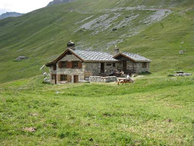 Il y a seulement un couple de randonneurs et moi dans ce superbe refuge de pierres et de bois, une belle salle, petit dortoir agréable. Les patrons sont attentifs et sympathiques, le dîner digne d'un grand restaurant... Ici aussi, Génépi offert! Le prix à payer, et le même que les autres refuges.