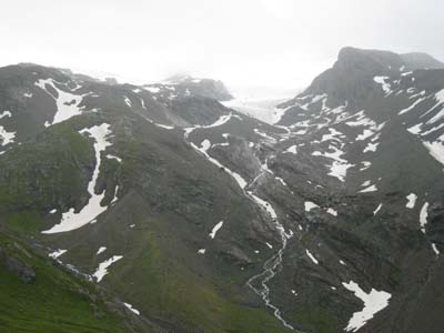 Descente par le même chemin, et de retour au refuge du Prariond à 11h20, mouillé et frigorifié... Je prends le temps de manger une omelette, et boire un café.