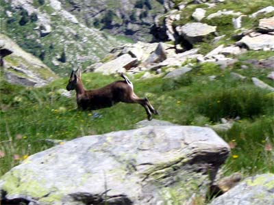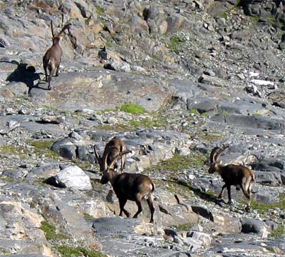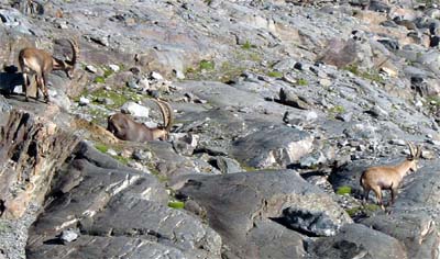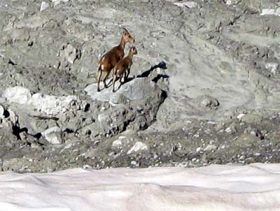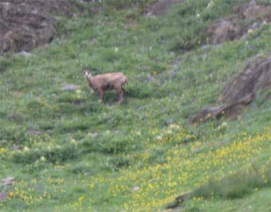 Je fais des allers retours sur les névés et les pierriers pour prendre des photos, et prendre aussi mon temps! De toutes façons cette étape n'est pas longue. Le temps est superbe, pas un nuage, ni un souffle d'air. Personne alentour, des chamois gambadent sur les pentes à distance...