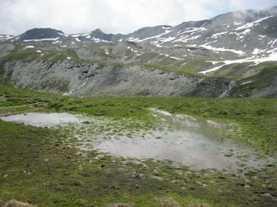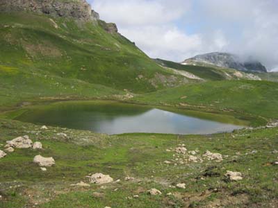 Le lac au col de la Rocheure, et les Pointes du Chatelard.