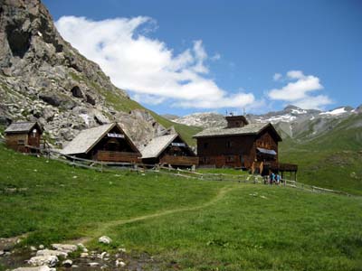 Une fois passé quelques rochers, la verdure, et les marmottes, j'arrive au refuge de Péclet Polset 2474m à 13 heures. Il y a beaucoup de monde, surtout des promeneurs venus du parking du Pont de la pêche. L'après midi je monte me promener tout autour un peu plus haut.