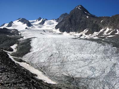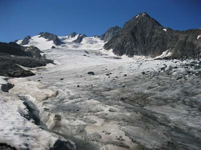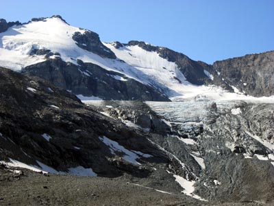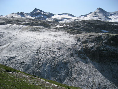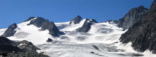 Le glacier des sources de l'Arc, le col de Trièves, et le Mulinet.