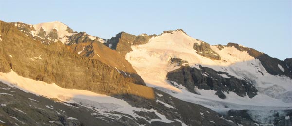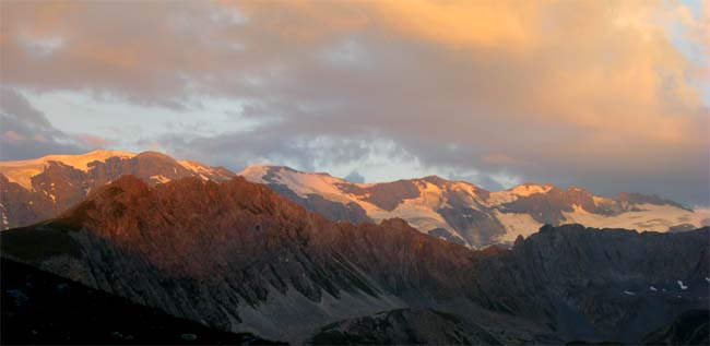 Coucher de soleil sur les glaciers de la Vanoise, vu du refuge.