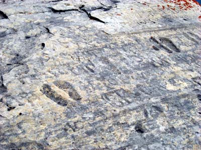 La Pierre aux pieds est une énorme roche gravée au Néolithique : elle est constituée de traces de pieds humains de petites tailles, probablement d'enfants... mais reste une énigme pour la science!