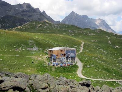 En face du refuge, très belle vue sur le vallon de Chavière avec le col au loin, et les Dents de la Portetta à l'avant. De l'autre côté, l'arête rocheuse du Grand Bec, et la Pointe du Vallonnet, dominent cet ancien cirque glaciaire.
