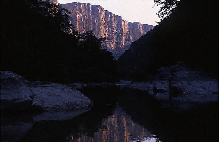 Etre dans un étroit lit de torrent, surplombé par des falaises de plus de quatre cents mètres de haut, et par-dessus tout çà, un coin de ciel arrivant à se montrer,