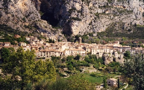 Le nom de ce village provient d'un monastère créé au Ve siècle par des moines qui avaient trouvé refuge dans des des grottes calcaires environnantes. Au XVIIe siècle un moine italien a dévoilé le secret de la cuisson de l'émail d'un bleu pur et lumineux. Depuis, la réputation de Moustiers ne s'est jamais démentie.
