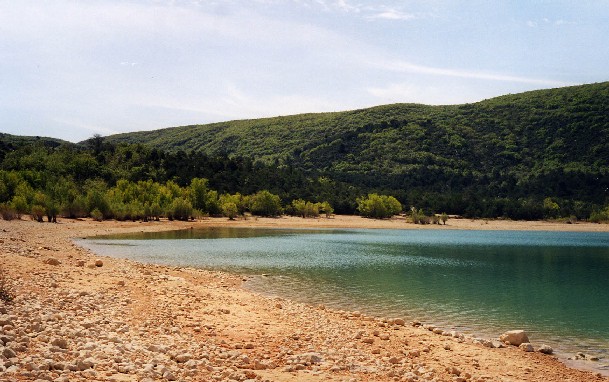 Sur la rive en face c'est le département du Var. L'eau de ce lac est la plus pure de toute la région, et une grande quantité alimente même la banlieue marseillaise. |