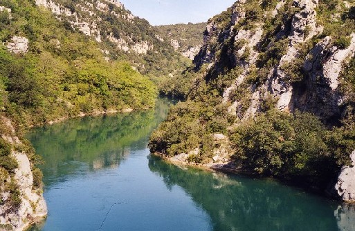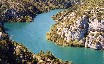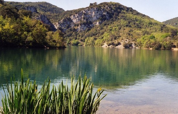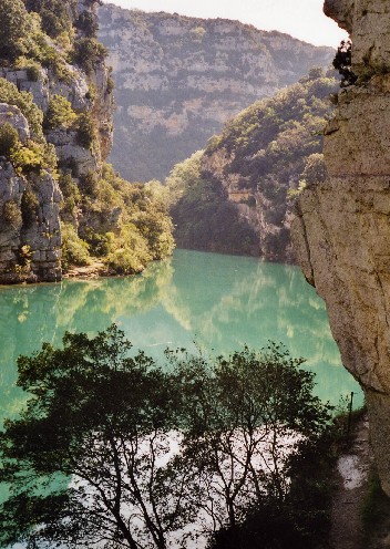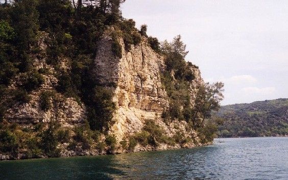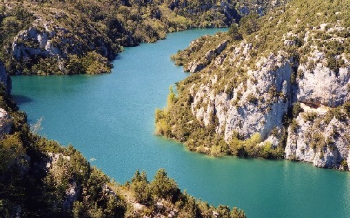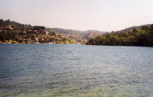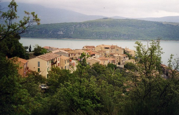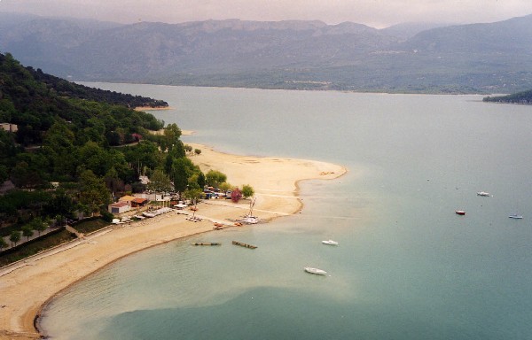 Ici prend fin le Grand Canyon du Verdon, et ses étroites falaises. Ici, nous quittons les Alpes de haute Provence pour entrer dans le Var. Ici le torrent émeraude s’ouvre sur le lac artificiel : de 12 Km de long, et 2 Km de large ; recouvrant l’ancienne vallée du Verdon sur une superficie de 2200 hectares, il y a 90 mètres au plus profond. |