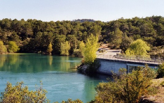 On contourne des cultures, et des lignes hautes tensions avant d'atteindre un petit lac au fond du ravin de St Pierre. Suivre toujours la direction sud pour traverser le Verdon sur le Pont Sylvestre.