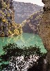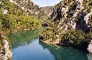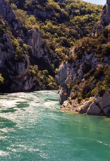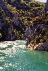 Je coupe la route pour retrouver le sentier dit : "les Gorgues longues". Il contourne les falaises, les surplombe, et suit de haut le cours du Verdon. Un belvédère permet d'avoir une vue superbe sur le torrent émeraude qui s'étire entre lacs et gorges. |