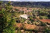 En face, le village de Montpezat et son château. La petite route très agréable continue jusqu'à un embranchement ; je prends à droite un large chemin en pente douce dans les bois de chênes, et des jeunes plants de cèdres. On longe un camping caravaning.
