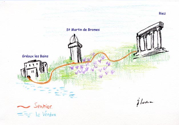 J’ai commencé et fini ce circuit à GREOUX LES BAINS par commodité : en effet les cars SUMIAN au départ de MARSEILLE, sont quotidiens (sauf dimanches et fêtes). Tel : 04 42 54 72 82. |