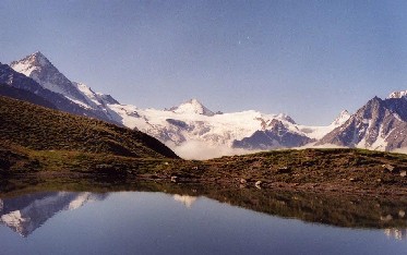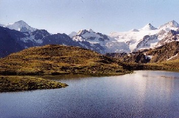Le lac Beplan, la Dent Blanche, les Pointes Veisivi, et au fond la Dent d'Hérens |