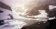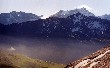 Quelques passages scabreux avec 8 ou 900 mètres de vide, et puis le sentier grimpe tout droit, avant de reprendre sa direction nord à flanc de pente avec des chutes de pierres. Deux ou trois névés à traverser, et une grande combe à contourner ; pendant ce temps la brume envahit toute la vallée.