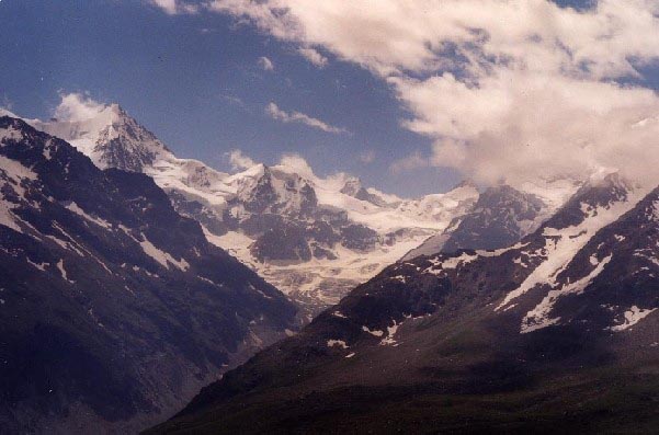 Sur le sentier balcon du val d'Anniviers : au fond, le Cervin et la Pointe de Zinal.